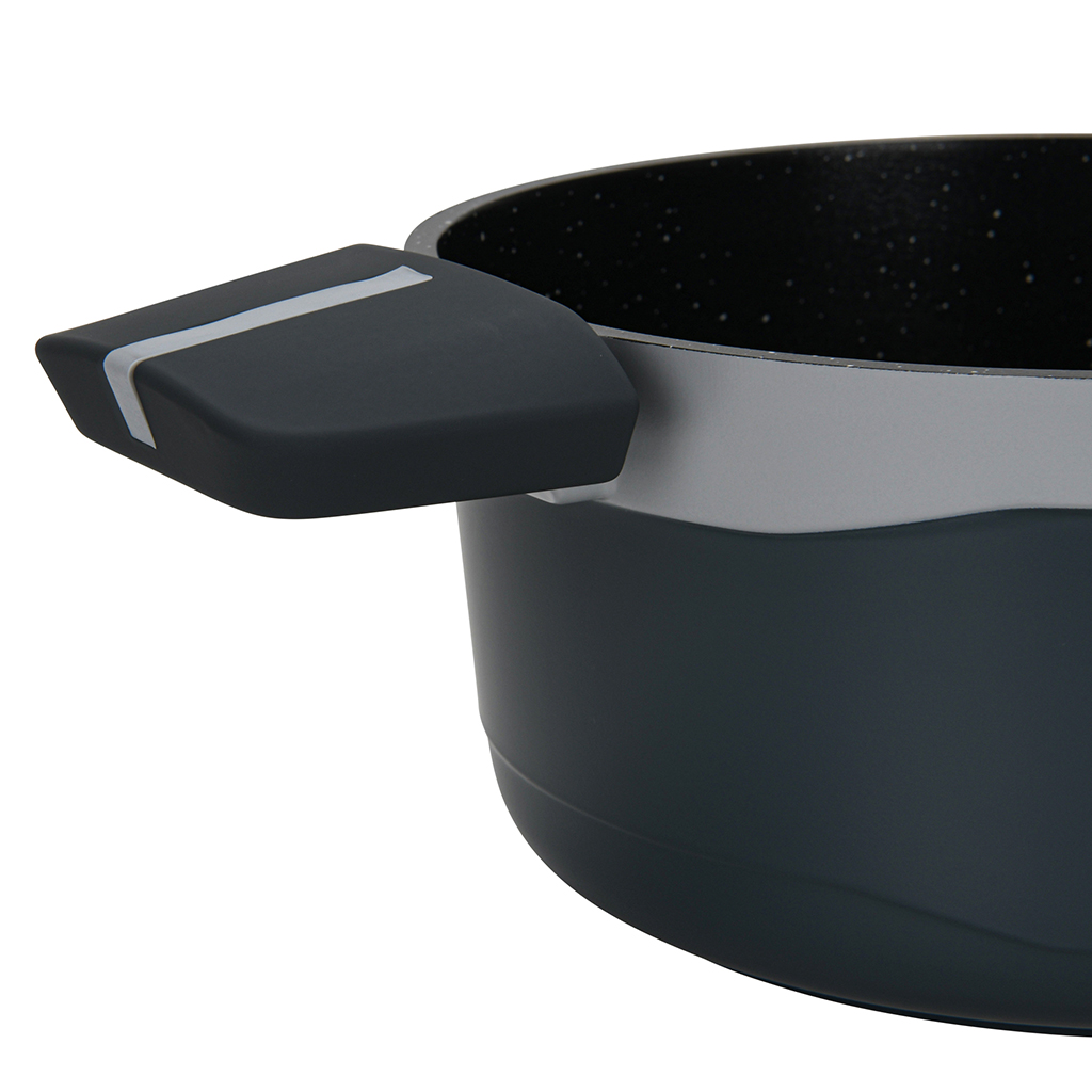 – Bakelitinės rankenos su minkšta danga ir silikoniniais įdėklais yra malonios liesti, neslidžios ir išlieka vėsios gaminant.