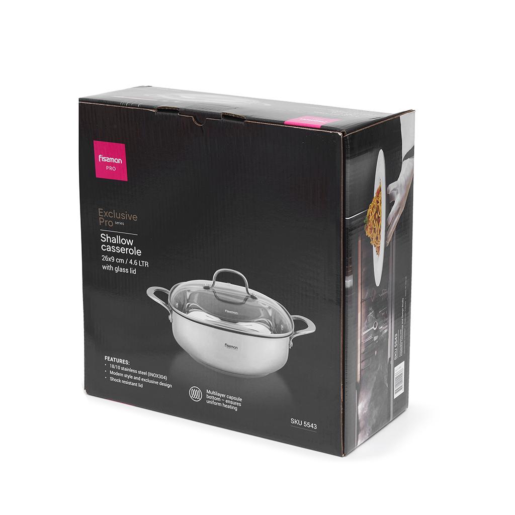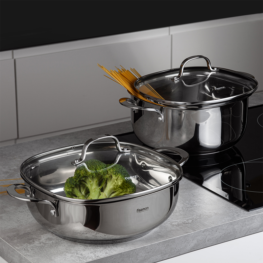 un modernas tehnoloģijas? EXCLUSIVE PRO sērija no FISSMAN – premium klases trauki tiem, kuri novērtē kvalitāti, uzticamību un stilu. Galvenā EXCLUSIVE PRO kolekcijas īpašība – unikāla kvadrātveida sienu forma ar apaļu pamatni.