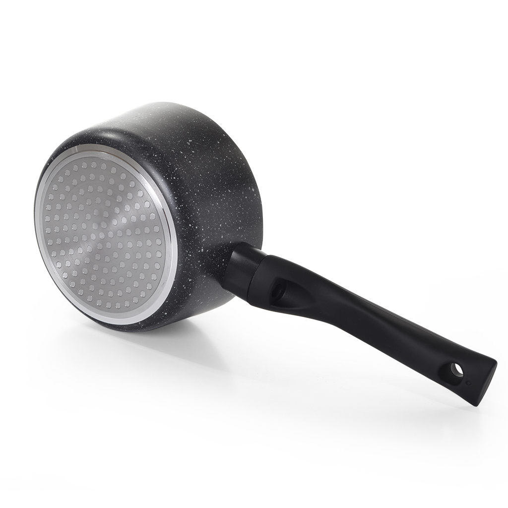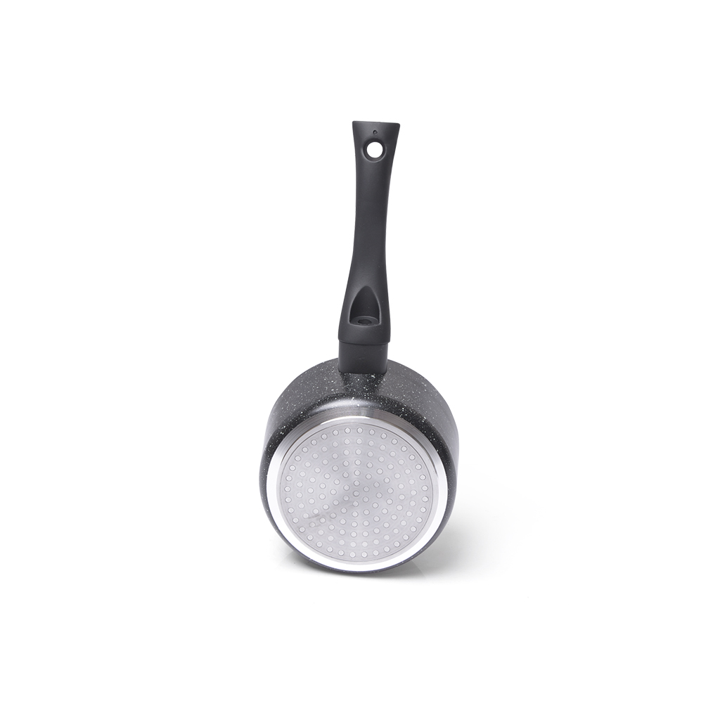 FISSMAN покорит Вас с первого взгляда. Сковороды этой серии производятся практически с момента основания компании и до сих пор находятся на пике популярности. Кованая алюминиевая основа, качественное антипригарное покрытие, классический дизайн, благородный черный цвет с белыми вкраплениями делают коллекцию FIORE любимой и желанной на каждой кухне. • Верхний слой современного антипригарного покрытия Marble состоит из мраморных белых вкраплений, которые создают дополнительную защиту от повреждений. • За счет гладкой поверхности внутри хорошо и быстро готовятся как мясные, так и овощные блюда, изделия легко чистятся. • Ковш удобен для варки яиц, каш, пельменей, макарон в небольших количествах, кипячений воды и молока. • Ручка изготовлена из бакелита – не нагревается, не скользит. • Серия FIORE представлена сковородами различной функциональности: классическая для жарки, блинная, глубокая, а также ковш. Посуда серии FIORE станет надежным союзником в ежедневном приготовлении вкусной и полезной еды. Выбирайте лучшее для своей семьи: доверьтесь опыту FISSMAN.