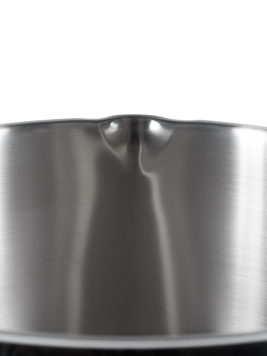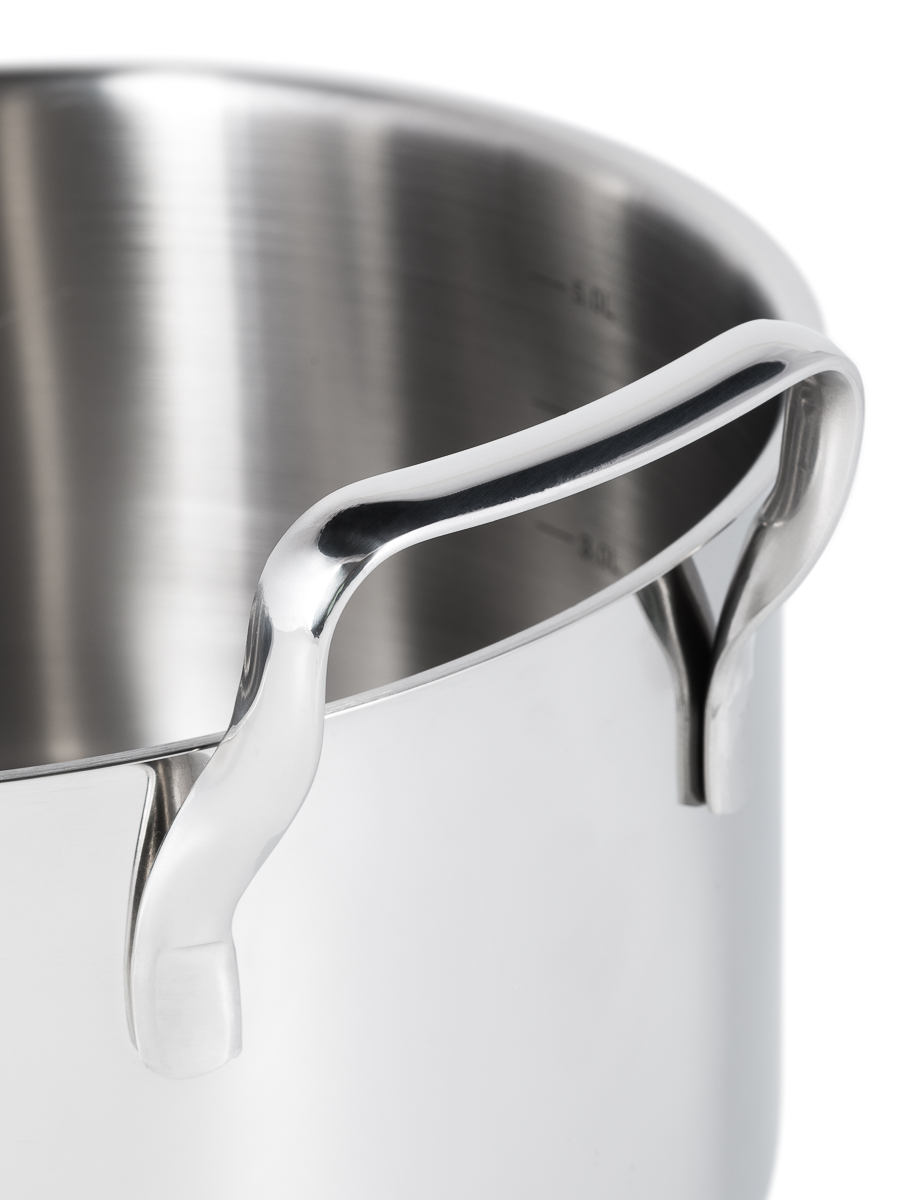 • • Удобные ручки из нержавеющей стали - кастрюли можно складывать одна в другую.