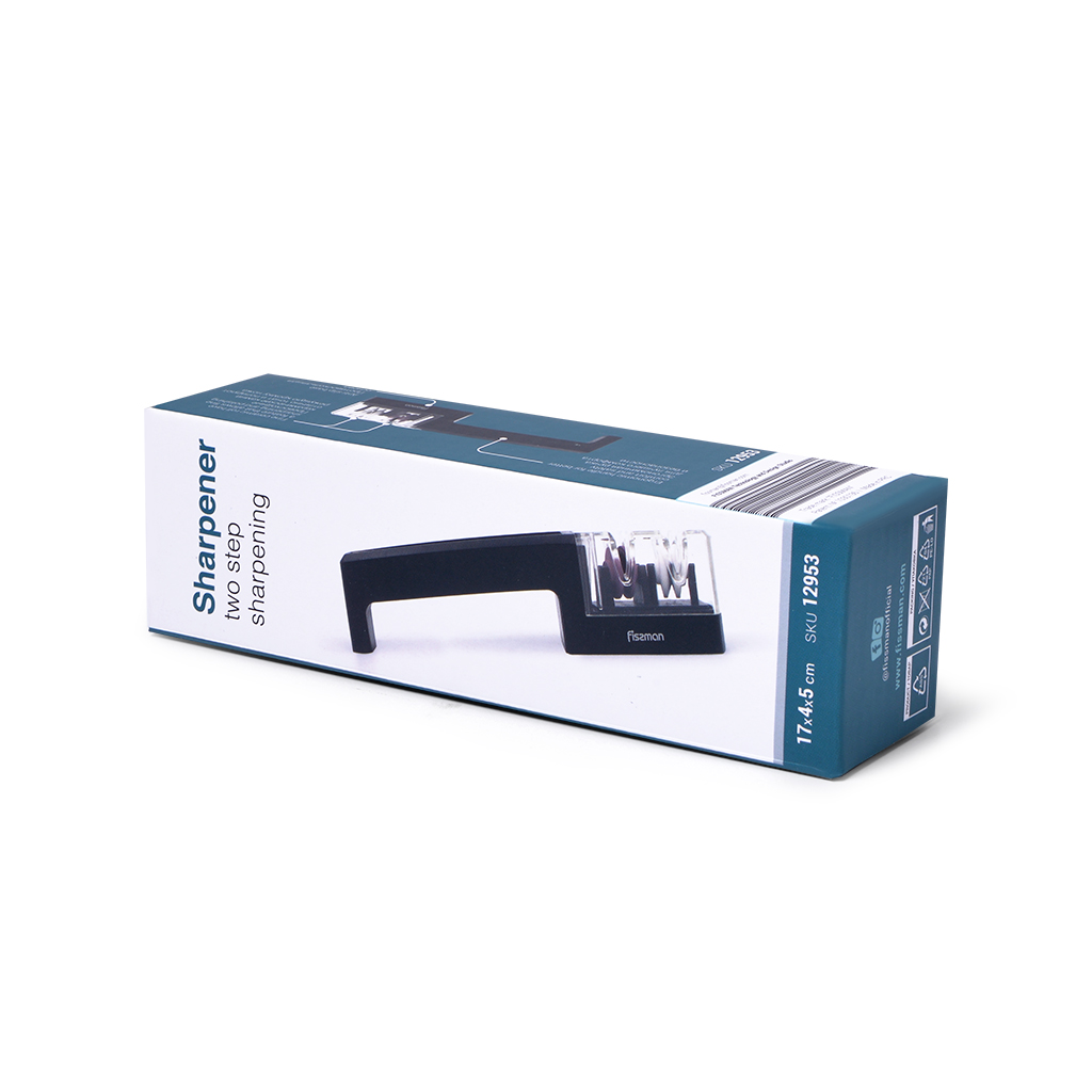 Чтобы процесс приготовления пищи доставлял удовольствие, рабочие инструменты всегда должны быть в порядке. Для обработки мяса, рыбы, овощей необходимы качественные и, что особенно важно, острые ножи. Легко и профессионально вернуть лезвию ножа первоначальную остроту вам поможет точило FISSMAN. Удобная и безопасная конструкция точила не потребует много сил и времени для поддержания ножей в идеальном состоянии. • Двухступенчатая система для грубой заточки и окончательной правки лезвия с камнями из керамики. • Эргономичная рукоятка обеспечивает комфортный и надежный захват. • Фиксированный угол наклона камней обеспечивает равномерную заточку. • Корпус из прочного полимерного материала предотвращает скольжение точила во время работы. Точила от компании FISSMAN сочетают в себе безопасность, надежность, универсальность и долговечность. Выбирайте лучшее для своей семьи: доверьтесь опыту FISSMAN!